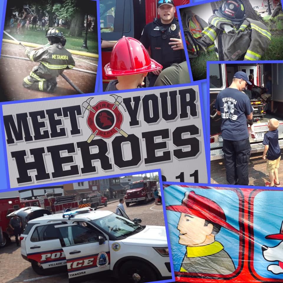Metamora Area Business Association event that includes first responders, inflatables, face painters, balloon artist, a DJ, pork chop cookout, and public health initiatives.