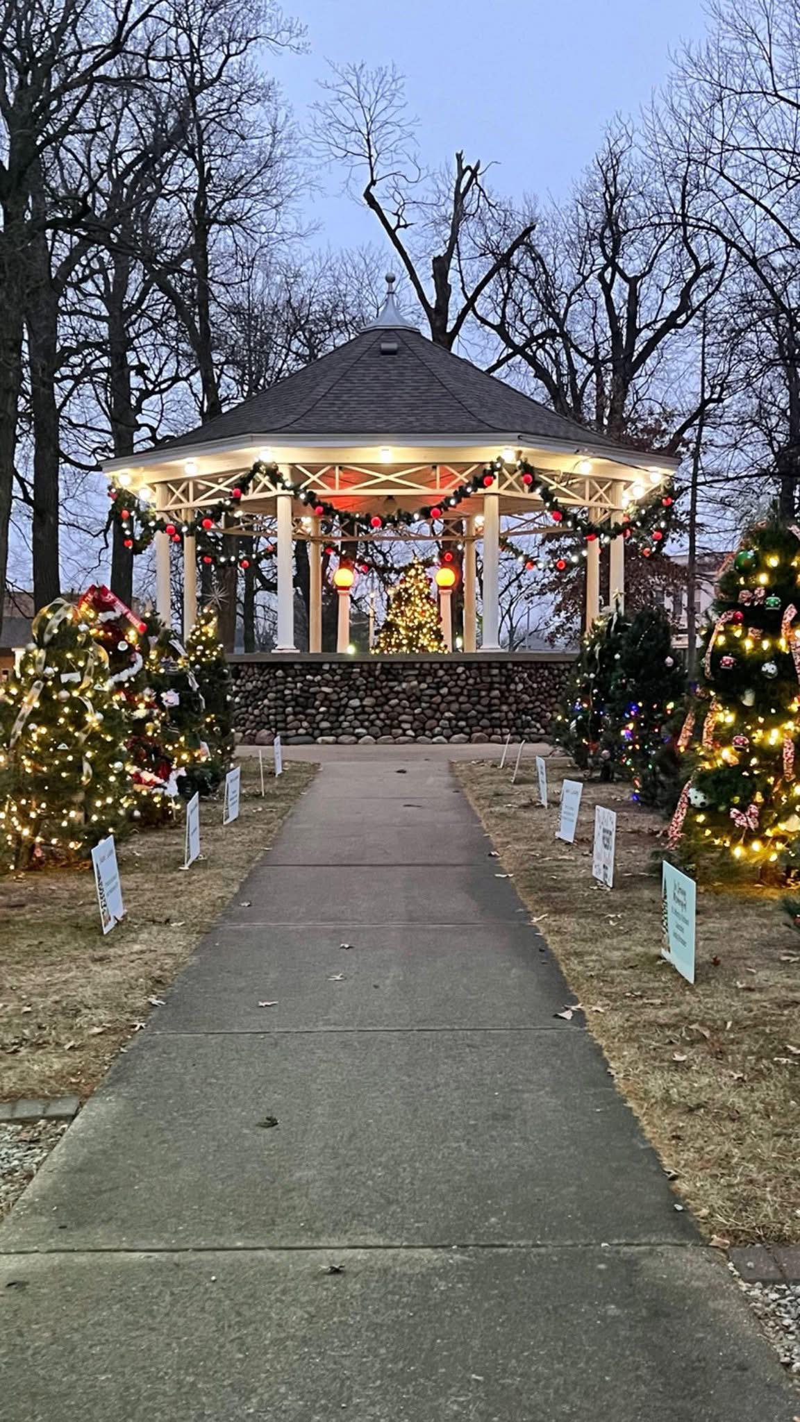 Local businesses and families sponsor a real tree on the Metamora Square. A tree lighting kicks off the season with carolers singing while all the trees are lit at once.